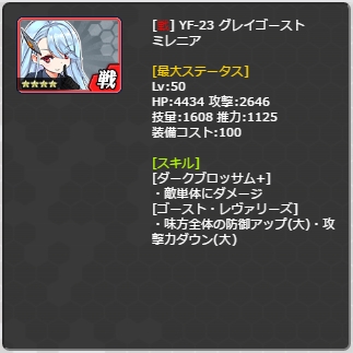 | YF-23ミレニア | ミレニアの髪飾りx80 怪盗ミレニア討伐証x40 リペアチップF(L)x1 | 1 |