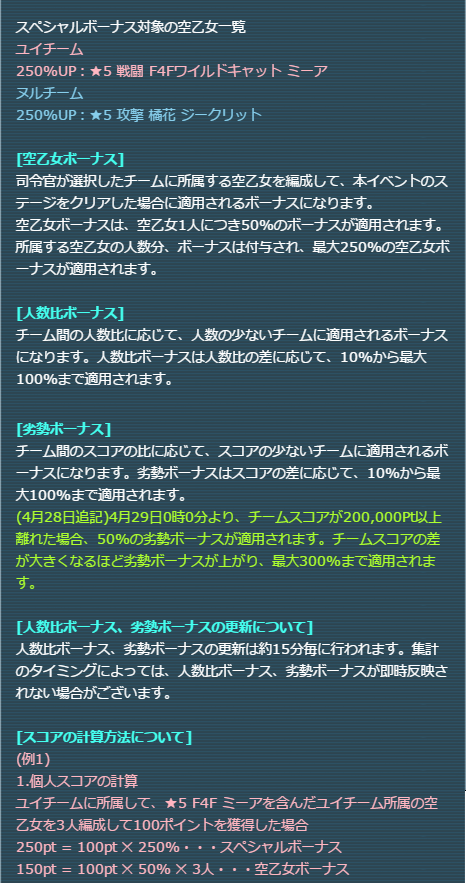 ※個人スコア、チームスコアは各種ボーナスなしの数値