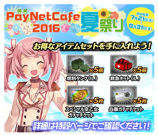 PayNetCafe夏祭りキャンペーン 開催期間 2016/07/21~08/31まで