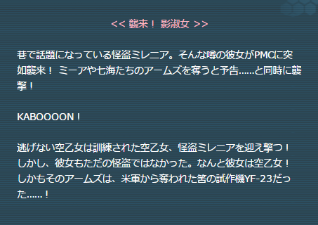 | YF-23ミレニア | ミレニアの髪飾りx1500 怪盗ミレニア討伐証x200 | 1 |