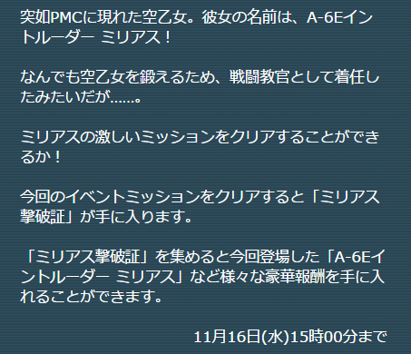 | A6-E ミリアス | ミリアス撃破証 x 1800 | 1 |