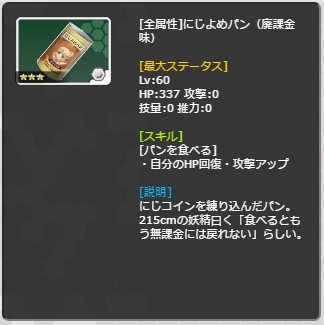 | さらば、にじよめちゃん | 42 | 200 | 18 | 15 | 5.56 | 23.33 | G x 15.00 | HP約10万(95686~95687) |