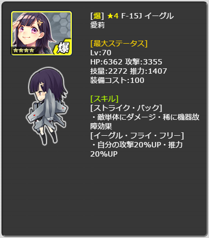 | F-15Jイーグル 愛莉 ★5バージョン | ★5 | 2倍 | イベント交換所 |