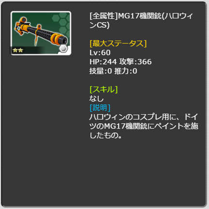 | MG17機関銃(ハロウィンCS) | コウモリバッチx50 パンプキンバッチx10 | 3 |