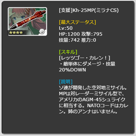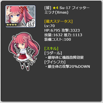 | Su-17フィッター ミラナ(Xmas) | ★4 | 1.3倍 | イベント交換所 |